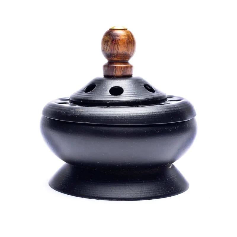 Czapka pomaga kontrolowanie dymu i utrzymywanie żaru w garnku, zapewniając bezpieczniejsze i bardziej stabilne użytkowanie. Kompaktowa konstrukcja sprawia, że nadaje się do pomieszczeń medytacyjnych, rytuałów oczyszczających lub do codziennego użytku.