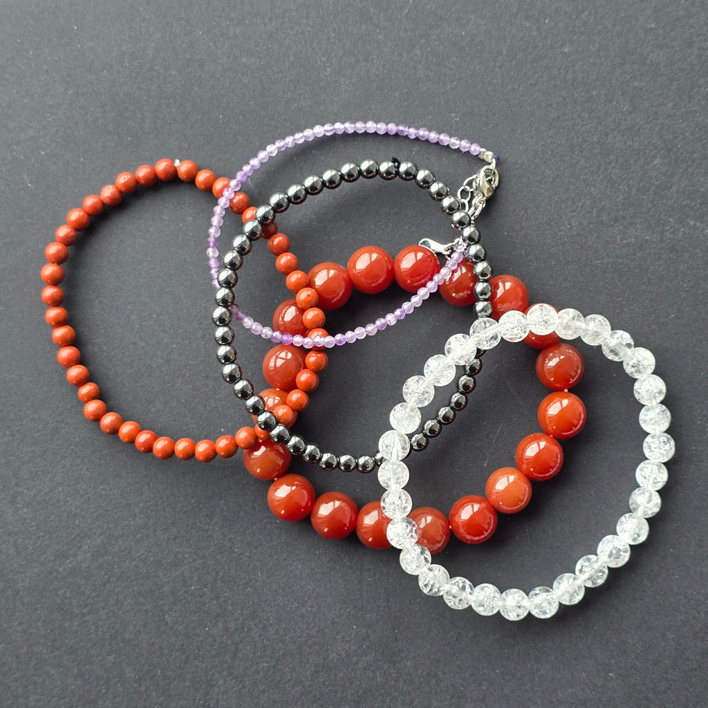 Czerwony jaspis przynosi stabilność emocjonalną i spokojną energię w chwilach szybkiego rytmu.