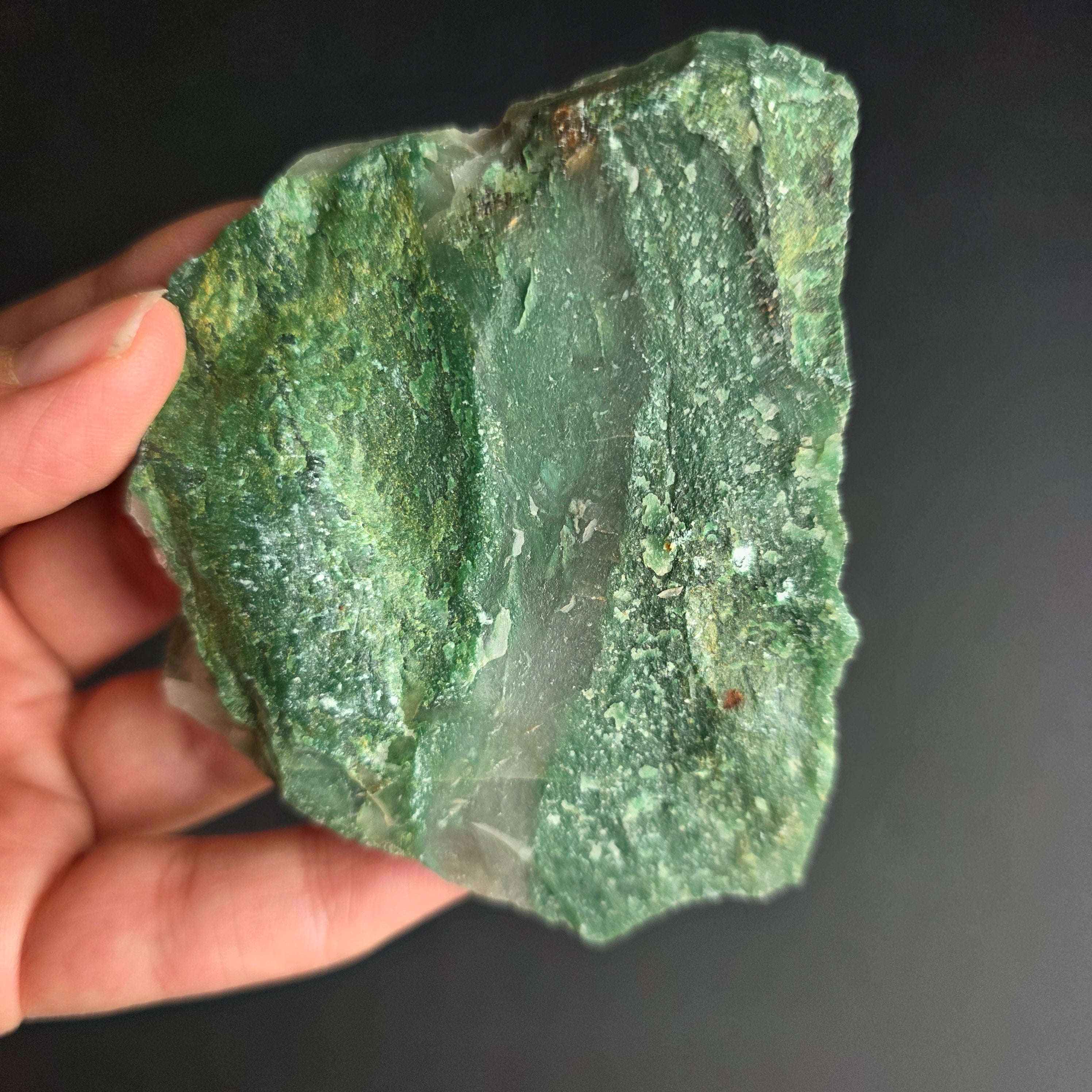 Zielony jadeit to odmiana jadeitu, składająca się głównie z krzemianu wapnia i magnezu. Charakterystyczny zielony kolor zawdzięcza obecności chromu i żelaza w swoim składzie chemicznym.